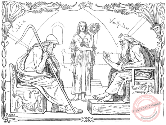 Vafthrúdnir (Vafþrúðnir, penjahit yang perkasa), sang raksasa yang bijaksana dan kaya akan pengetahuan. Jika Mímir adalah Norn yang paling bijaksana, maka Vafthrúdnir adalah Jötunn yang paling bijaksana. Dalam puisi Vafþrúðnismál di “Poetic Edda”, ketika dia sedang berkontemplasi (merenung dan .